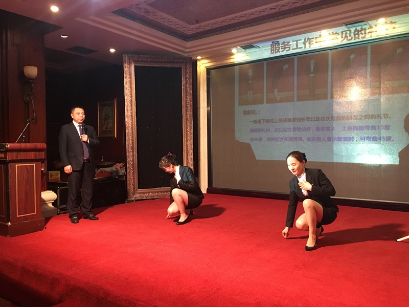 商務(wù)禮儀,通常指的是禮儀在商務(wù)行業(yè)之內(nèi)的具體運(yùn)用,主要泛指商務(wù)人員在自己的工作崗位上所應(yīng)當(dāng)嚴(yán)格遵守的行為規(guī)范。學(xué)習(xí)商務(wù)禮儀除了有利于規(guī)范行為外,還有利于傳遞信息、增進(jìn)感情,以及樹立形象,是個(gè)人和企業(yè)發(fā)展不可或缺的重要素質(zhì)。此次培訓(xùn),馮總從儀表著裝、交往舉止、溝通禮儀、電話禮儀、會(huì)議禮儀等方面入手,不僅詳細(xì)講解了職場(chǎng)服裝、發(fā)飾、領(lǐng)帶、著裝搭配以及基本的商務(wù)禮儀規(guī)范,同時(shí)還與酒店的兩位工作人員共同現(xiàn)場(chǎng)演示了商務(wù)活動(dòng)中的站、坐、走、拾物等基本規(guī)范要領(lǐng),以及服務(wù)人員接待客人時(shí)的問好、致歉、指引等動(dòng)作標(biāo)準(zhǔn),使大家能夠更直觀、準(zhǔn)確的掌握基本商務(wù)禮儀。此外,馮總還結(jié)合自身多年酒店工作經(jīng)驗(yàn)和外出學(xué)習(xí)經(jīng)驗(yàn),以視頻、案例、情景模擬等方式,將實(shí)際工作中會(huì)出現(xiàn)的問題及行為標(biāo)準(zhǔn)進(jìn)行了生動(dòng)展示,有效提高了窗口單位人員的綜合素質(zhì)。