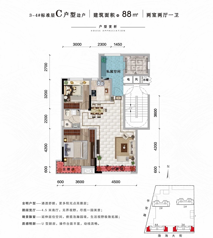 中天御品項目位于營口市渤海大街與平安路交會處,地處西市區(qū)核心位置,營口主城區(qū)的交通要道,地理位置十分優(yōu)越。行政配套遍布項目周邊,商業(yè)配套齊全滿足您日常購物所需。 項目占地面積1.6萬㎡,建筑面積3.7萬 ㎡,整體由4棟17層新中式雅居小高層組成,配有商鋪及車庫/車位,完全人車分流設計。 戶型種類齊全,面積區(qū)間從88平到118平,從兩室兩廳一衛(wèi)到三室兩廳兩衛(wèi)。全部戶型均為南北通透的五明戶型設計。