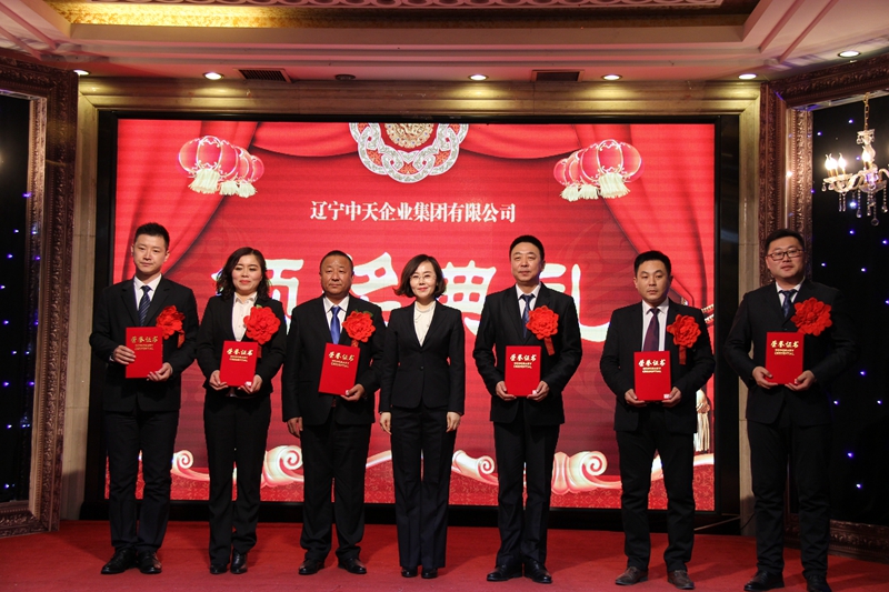 于寶權(quán)董事長分別與遼陽公司總經(jīng)理孫繼莊、天運(嘉晨)公司總經(jīng)理周春雷、天泰公司總經(jīng)理于洪濤、物業(yè)公司總經(jīng)理王化啟、萬豪酒店總經(jīng)理馮國簽訂2018目標(biāo)管理責(zé)任狀。
