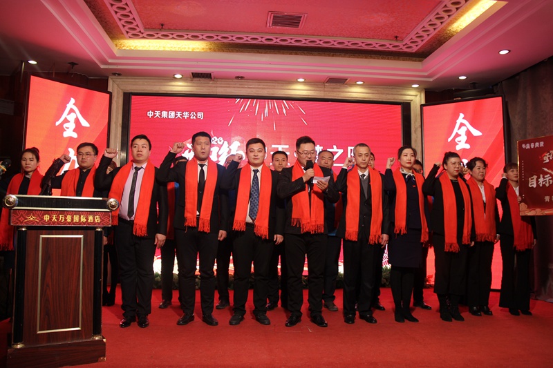 2019年12月18日,中天集團(tuán)在萬(wàn)豪酒店舉行2020年“開(kāi)門(mén)紅”啟動(dòng)儀式。集團(tuán)于寶權(quán)董事長(zhǎng)、于洪波總經(jīng)理,周春雷、于洪濤副總經(jīng)理以及各分子公司領(lǐng)導(dǎo)班子成員共計(jì)100余人參加大會(huì)。