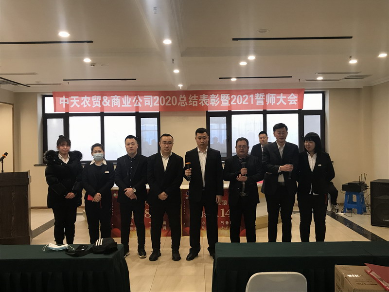 1月28日下午,農(nóng)貿(mào)和商業(yè)公司召開(kāi)2020年度總結(jié)表彰大會(huì)。商業(yè)公司副總經(jīng)理田彧做商業(yè)公司2020年度工作匯報(bào)。表彰2020年度優(yōu)秀員工農(nóng)貿(mào)公司和商業(yè)公司團(tuán)隊(duì)上臺(tái),對(duì)新年度指標(biāo)任務(wù)開(kāi)展誓師。孫晶總經(jīng)理分別與各位經(jīng)理簽署責(zé)任狀,并發(fā)表講話(huà)。通過(guò)此次會(huì)議,使農(nóng)貿(mào)公司和商業(yè)公司的員工進(jìn)一步明確了2021年度工作目標(biāo),提升了員工凝聚力,為更好的完成年度任務(wù)奠定了基礎(chǔ)。