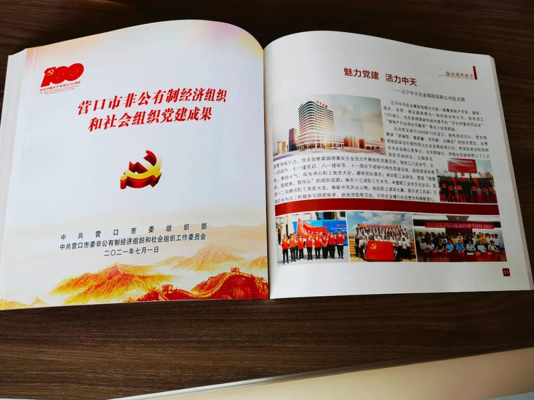2021年6月25日,營口市委組織部及營口市委非公有制經(jīng)濟組織和社會組織工作委員會在營口文化藝術(shù)中心舉行黨建成果發(fā)布會,并對黨建取得優(yōu)異成績的單位進行隆重表彰。中天企業(yè)集團黨支部獲得黨建促活力成果獎,大會現(xiàn)場進行成果發(fā)布,受到營口市委的表獎。