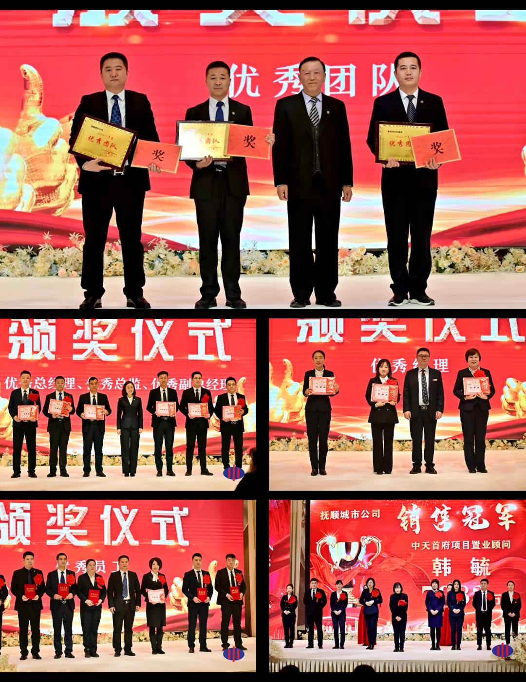 周春雷副總裁宣讀了集團(tuán)2021年度表獎決定,撫順城市公司、物業(yè)集團(tuán)公司、總部項目發(fā)展部三個單位獲得優(yōu)秀團(tuán)隊;盤錦城市公司總經(jīng)理孫福興、物業(yè)集團(tuán)公司總經(jīng)理王化啟獲得優(yōu)秀總經(jīng)理;總部財務(wù)管理中心總監(jiān)徐寶亮、總部項目管理中心總設(shè)計師盧詩揚(yáng)獲得優(yōu)秀總監(jiān);盤錦兼錦州城市公司副總經(jīng)理徐強(qiáng)、撫順城市公司副總經(jīng)理孫海峰獲得優(yōu)秀副總經(jīng)理;撫順城市公司銷售總監(jiān)張喆、總部成本管理部經(jīng)理萬哲、總部人力資源部副經(jīng)理王慧博三人獲得優(yōu)秀經(jīng)理;總部財務(wù)管理部出納主管姚蘭等34人獲得優(yōu)秀員工;撫順城市公司銷售置業(yè)顧問韓毓等9人獲得銷售標(biāo)兵。會上,舉行了隆重的表獎儀式。