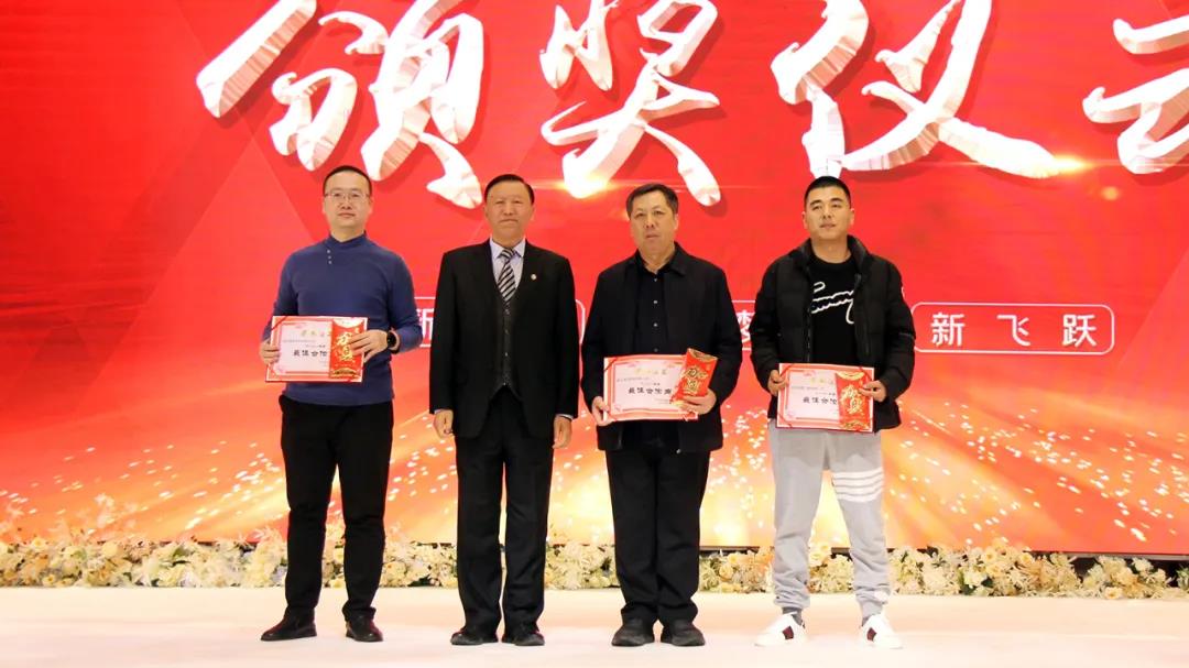 今年大會邀請了部分合作單位的領(lǐng)導(dǎo)參會,同時,增設(shè)了“最佳合作單位”獎項,于洪濤執(zhí)行總裁宣讀了表獎決定。2021年,集團(tuán)十個項目同時開工建設(shè),建設(shè)面積達(dá)135萬平方米,創(chuàng)造了中天集團(tuán)成立以來最高紀(jì)錄。成績的取得,得益于合作單位的鼎力協(xié)助和大力支持,各合作單位守信用、重承諾,遵守合同協(xié)議,為中天的發(fā)展做出了貢獻(xiàn)。大會授予營口鴻元建筑有限公司董事長李余躍、沈陽祺景門窗有限公司總經(jīng)理李金秋、沈陽晟聯(lián)商貿(mào)有限公司總經(jīng)理郝偉三人為2021年度最佳合作商稱號。于寶權(quán)董事長親自為他們頒獎。