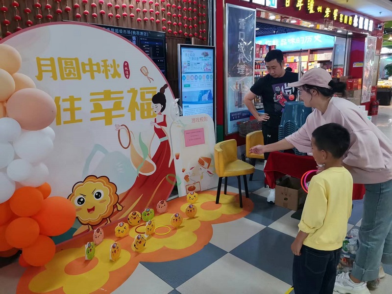 9月17日,一年一度的中秋佳節(jié)溫馨而至,為回饋長久以來顧客們對(duì)中天農(nóng)貿(mào)的支持與厚愛,中天農(nóng)貿(mào)在9月15日至9月17日節(jié)日期間舉辦了“開心圈月餅 歡樂共團(tuán)圓”的活動(dòng),活動(dòng)期間,全場消費(fèi)達(dá)額66元的每一位顧客均可以在活動(dòng)現(xiàn)場領(lǐng)取三支幸福圓圈,現(xiàn)場鋪滿象征著團(tuán)圓的月餅道具,每一個(gè)道具都對(duì)應(yīng)相應(yīng)的節(jié)日禮品如砂鍋、調(diào)料瓶、盆、紙抽等等實(shí)用的小禮品,游戲規(guī)則就是套中你心儀的禮品,就可以現(xiàn)場拿走,即使顧客沒有套中也沒有關(guān)系,物業(yè)服務(wù)人員仍會(huì)給您補(bǔ)發(fā)一件貼心小禮物,保證每一位參與活動(dòng)的顧客朋友們,都能得到一份中天農(nóng)貿(mào)送出的禮品祝福。