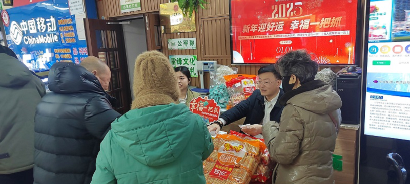 在元旦這個喜慶的日子里,農(nóng)貿(mào)公司桃花源店熙熙攘攘,一場別具一格的“一把抓幸?!贝黉N活動吸引了眾多顧客積極參與,市場中處處回蕩著歡聲笑語,節(jié)日的氣氛濃郁而熱烈。