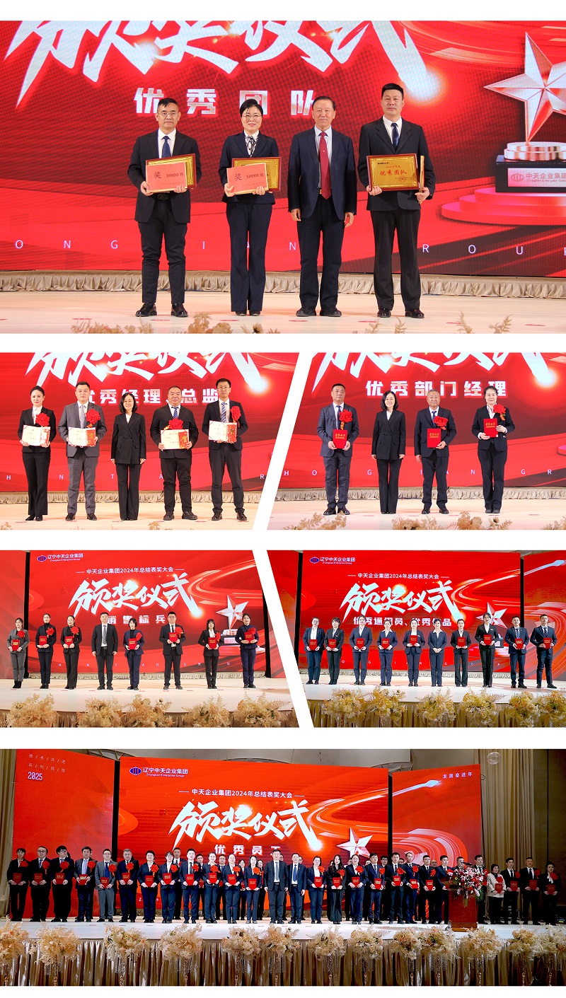 王曉青總裁助理宣讀了集團(tuán)2024年度表獎(jiǎng)決定,錦州城市公司、農(nóng)貿(mào)管理公司、集團(tuán)總部財(cái)務(wù)管理中心三個(gè)單位獲得優(yōu)秀團(tuán)隊(duì);大連城市公司總經(jīng)理許棕雯、酒店管理公司總經(jīng)理李敏獲得優(yōu)秀總經(jīng)理;集團(tuán)總部成本招采管理中心總監(jiān)譚學(xué)鍇、集團(tuán)總部項(xiàng)目管理中心總設(shè)計(jì)師盧詩(shī)揚(yáng)獲得優(yōu)秀總監(jiān);撫順城市公司副總經(jīng)理李巖、集團(tuán)總部人力資源部經(jīng)理王慧博、集團(tuán)總部工程裝修部經(jīng)理蘆偉三人獲得優(yōu)秀部門經(jīng)理;總部財(cái)務(wù)管理部出納主管姚蘭等47人獲得優(yōu)秀員工;錦州城市公司書香庭院項(xiàng)目銷售主管郭羽淑等7人獲得銷售標(biāo)兵。會(huì)上,舉行了隆重的表獎(jiǎng)儀式。同時(shí)還表獎(jiǎng)了《中天之窗》和《中天視角》優(yōu)秀通訊員和優(yōu)秀作品的獲獎(jiǎng)人員。