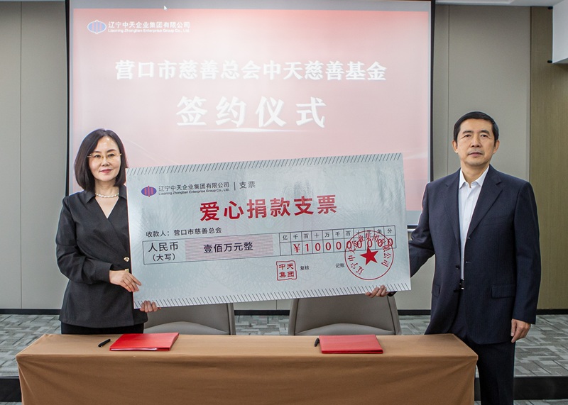 在第四屆“遼寧慈善獎”頒獎儀式上,遼寧中天企業(yè)集團憑借多年深耕慈善的突出貢獻,榮獲“遼寧慈善獎”捐贈企業(yè)殊榮,成為營口市唯一獲此殊榮的參評單位。在主題宣傳活動現(xiàn)場,集團總裁于洪波代表企業(yè)捐贈100萬元,與營口市慈善總會達成共識建立專項基金,以實際行動踐行“來源于社會,服務(wù)于社會”的發(fā)展理念。11月19日,于洪波總裁與市慈善總會黃渤副會長舉行簽約儀式,正式成立中天慈善基金,以慈善賦能助力振興。