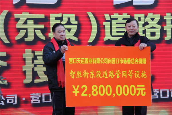 6、積極參與公益事業(yè)建設(shè),為慈善事業(yè)做貢獻(xiàn)。由集團(tuán)投資280萬(wàn)元捐建的營(yíng)口市智勝街東段綜合路網(wǎng)工程1130日竣工。1210日,在“一店一路”慶典儀式上,于寶權(quán)董事長(zhǎng)向營(yíng)口慈善總會(huì)副會(huì)長(zhǎng)郭慶嘉捐贈(zèng)“智勝街東段綜合路網(wǎng)工程”并將該道路交接給市公用事業(yè)管理局,標(biāo)志著集團(tuán)捐建的智勝街東段正式開通。118日,集團(tuán)向營(yíng)口市西部200戶貧困居民發(fā)放米面油,這已是集團(tuán)連續(xù)七年春節(jié)前慰問營(yíng)口市區(qū)西部貧困家庭。